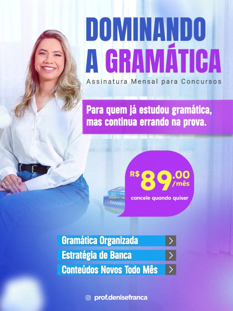 Dominando a Gramática é uma assinatura mensal criada para concurseiros que já estudaram língua portuguesa, mas continuam errando na prova não por falta de esforço, e sim por falta de clareza, organização e estratégia.